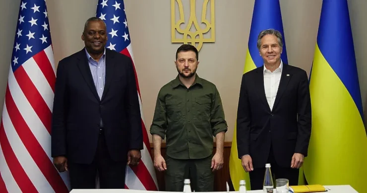 Ovo je prva posjeta visokog američkog zvaničnika Ukrajini otkako je počela ruska invazija prije 60 dana. Blinkenu se pridružio i ministar odbrane Lloyd Austin.
