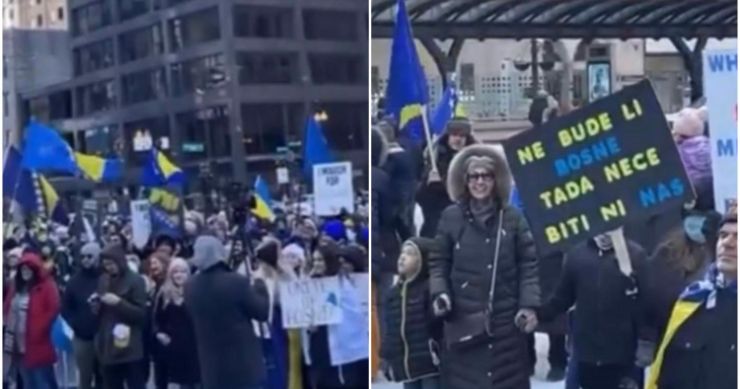 Kako se vidi na videu, na ulice Čikaga izašli su brojni građani koji žele jedinstvenu Bosnu i Hercegovnu.
