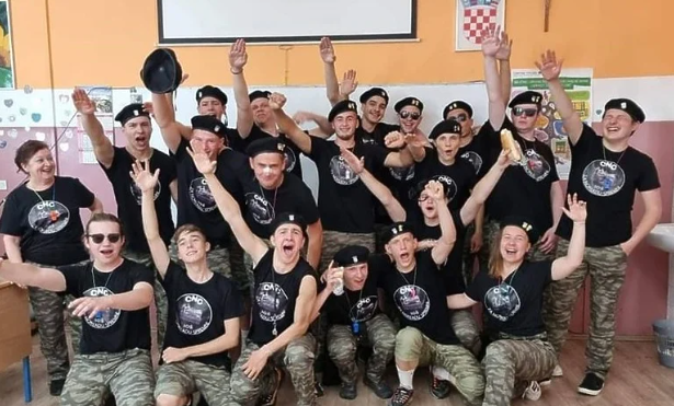 Budući CNC operateri imaju crne majice na kojima piše “Za norijadu spremni”, ali i maskirne hlače. Na fotografiji je i Romanjek dok ih sa smješkom gleda sa strane također u kombinaciji crne majice s natpisom i maskirnih hlača.