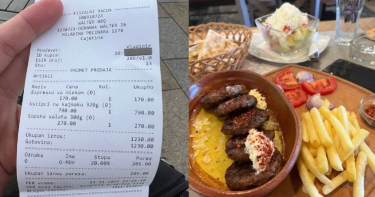 Fotografija računa sa Zlatibora na kojem su naplaćeni uštipci od mesa sa kajmakom i salatom i jedna kafa neminovno su privukli pažnju jer je čuveno pitanje – koliko je koštalo ‘zadovoljstvo’?