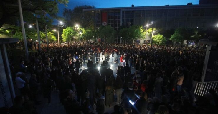 Ispred Ministarstva prosvete Srbije u Nemanjinoj 22 u Beogradu okupilo se više hiljada ljudi. Iako je na početku sve bilo mirno, neki ogorčeni učesnici protesta izjavili su da neće da se pomjere od Ministarstva prosvete.