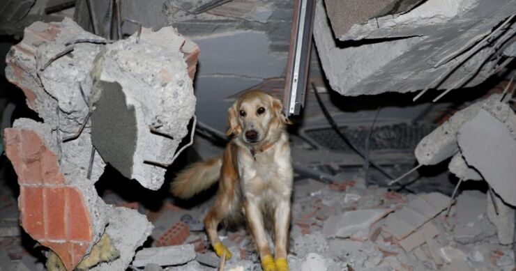 Kopuk je su za ovakve slučajeve dresirali timovi iz Vana. Tokom pretraga po ruševinama nakon zemljotresa isjekao je šape na razbijenom staklu.
