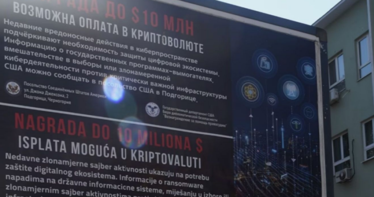 Bilbordi, koji oglašavaju nagradu za informacije koje mogu dovesti do identifikovanja ili lokacije bilo koje osobe koja je učestvovala u zlonamjernim sajber aktivnostima, Ambasada SAD-a postavila je na više lokacija u Podgorici.