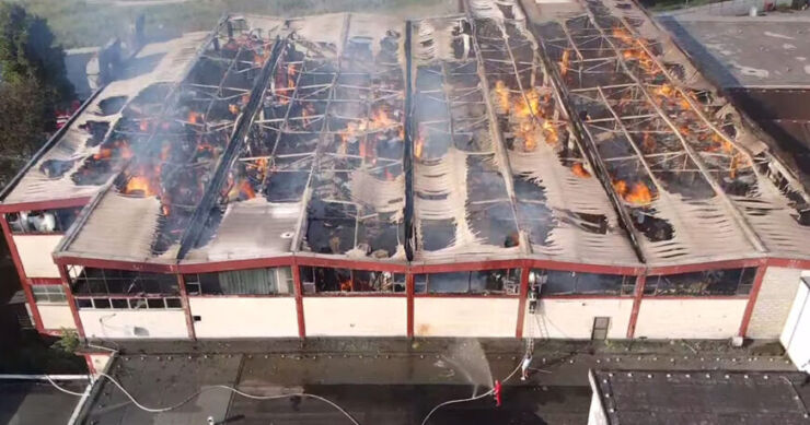 Požar je progutao kompletnu halu ovog preduzeća, što potvrđuju i snimci iz vazduha.