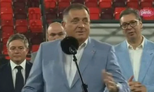 U Srbiji je jučer upriličena svečana ceremonija otvaranja stadiona u Leskovcu kojoj je prisustvovao i Milorad Dodik čiji je skandalozni govor ponovo privukao pažnju.