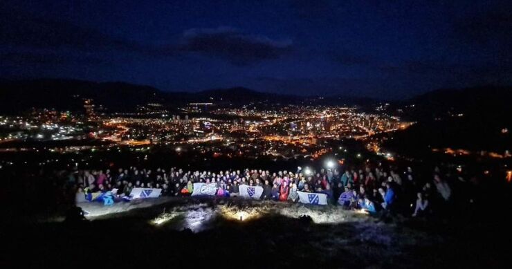 238 većinom omladine na Prva #ŠetnjaDoIftara 2023: Zmajevac i Zenica u pozadini. Ram za sliku našeg organizacionog planinarstva. Van rama je ostalo još učesnika koji nisu mogli stati u kadar. I da ostavim kosti u tuđini, ja bih, i tad, samo Bosnu sanj’o.#NaPravojSmoStazi#Azimuth135 🧭