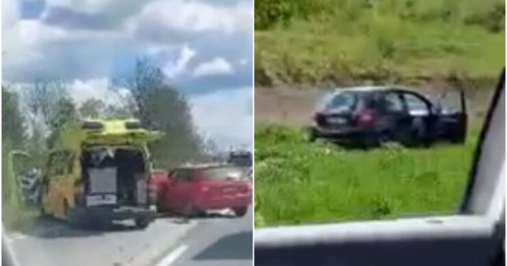U nesreći su učestvovala četiri vozila, a jedno je završilo na livadi pored puta.