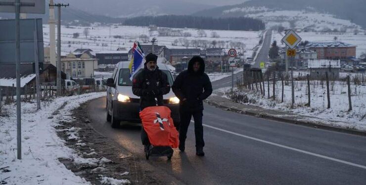 Mještani Sjenice su ga dočekali i ugostili u Hotelu Borovi gdje će prenoćiti kako bi se odmorio za nastavak zahtjevnog putovanja.