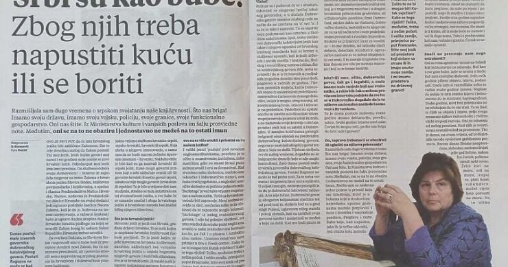 Govoreći o tome da Srbi smatraju dubrovačko naslijeđe svojim, iznijela je svoj nacionalistički i radikalan stav da Srbe treba istrijebiti poput buba.