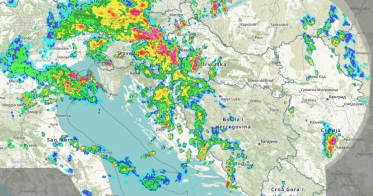 Na stranici Rain alarm može se vidjeti kako je veliki oblak stigao iz Slovenije te se preko Hrvatske približava i Bosni i Hercegovini.