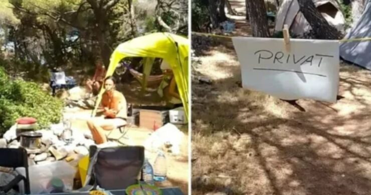 I ne samo da su svoj ilegalni kamp u nedirnutoj prirodi tik uz obalu mora ogradili, već su na “ogradu” stavili i natpis: “Privat”.