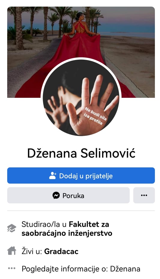 Na njenom Facebook profilu u komentarima su upućene hiljade osuđujućih poruka, a ona je nakon odmora, a potom i suspenzije na svoju profilnu fotografiju postavila sliku žene s rukama postavljenim kao da se brani i napisala: “Ne budi sila iza profila.”