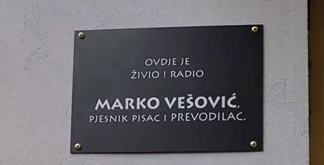 “Ovdje je živio i radio Marko Vešović pjesnik pisac i prevodilac.”, navedeno je.