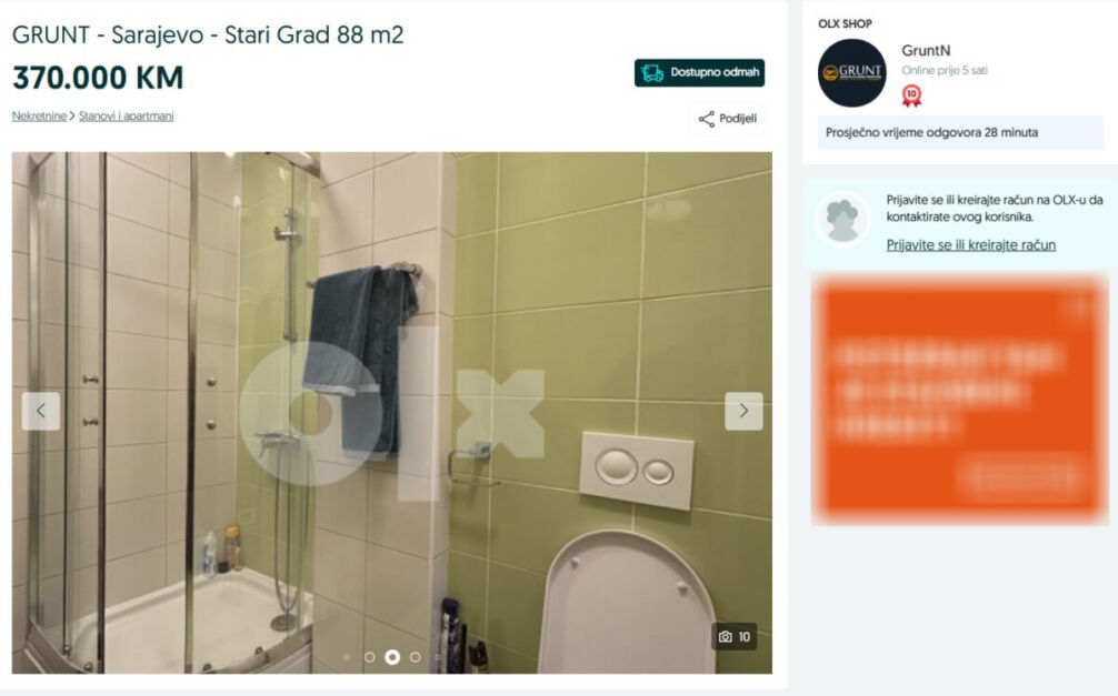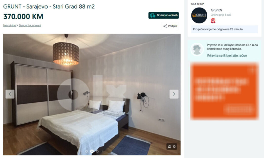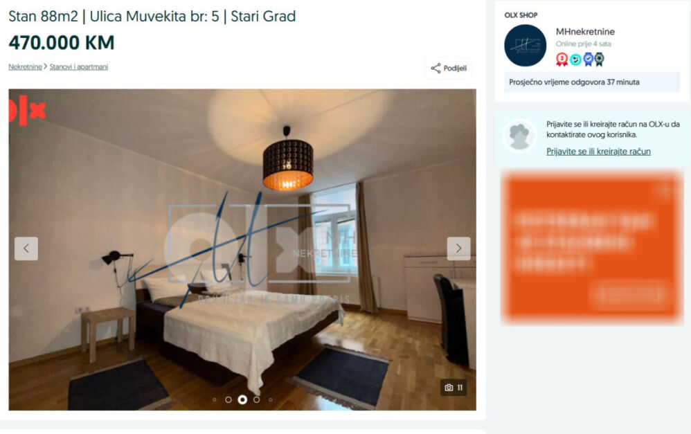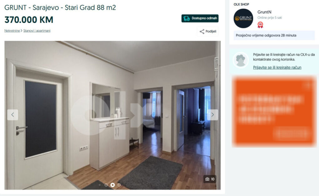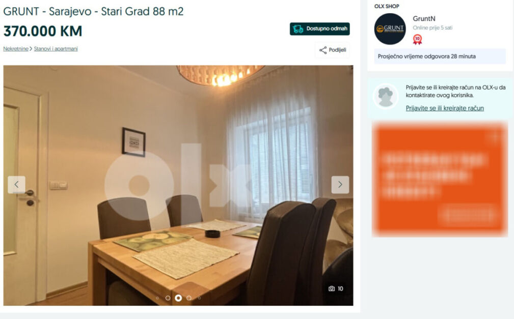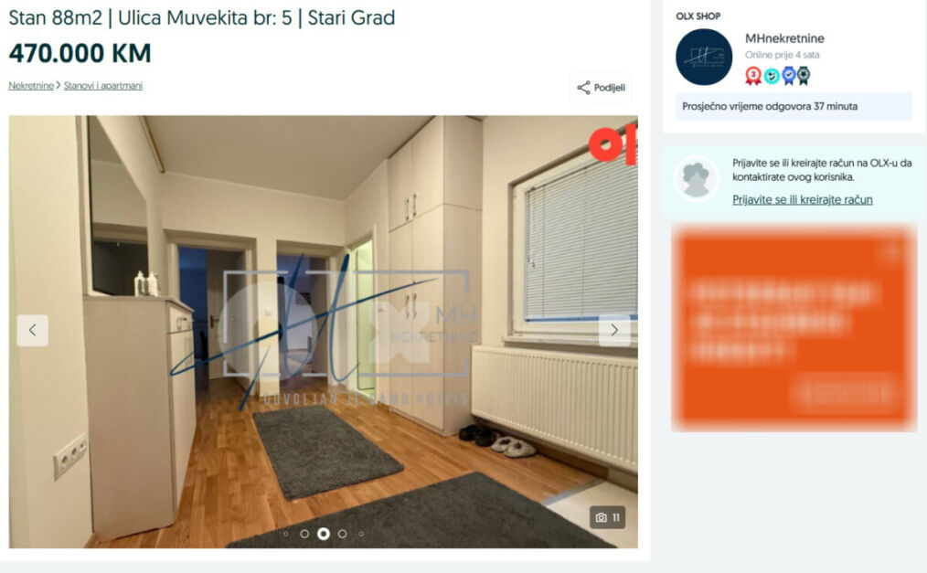 Prema oglasu, agencija MHnekretnine prodaje stan za 470.000 KM, dok agencija GruntN stan prodaje za 370.000 KM.