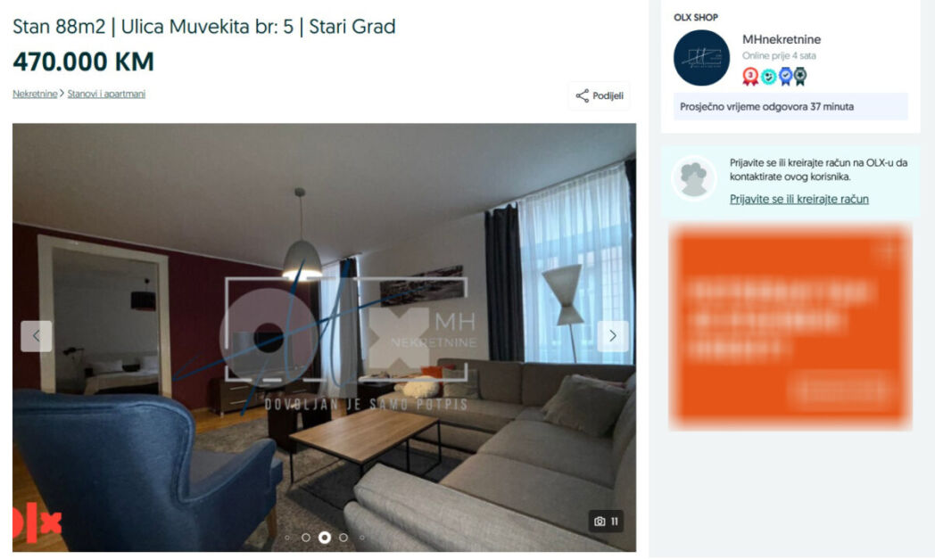 Ali da nije sve po pravilu pokazuje i posljednji oglas na kupoprodajnoj platformi OLX. Prema njemu, cijene kvadrata diktiraju agencije.