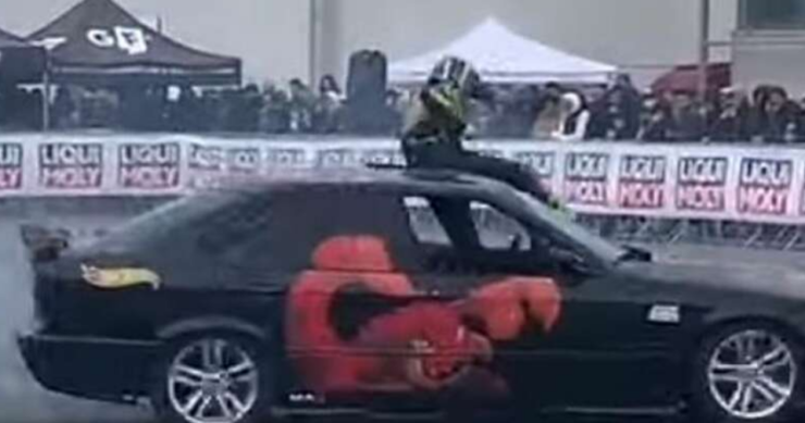Na društvenim mrežama pojavio se snimak na kojem se vidi kako vozač izlazi iz vozila, sjeda na krov i počinje da upravlja nogama prije nego što se automobil brzo oteo kontroli. Vozilo je zatim udarilo o barijeru sa koje su desetine ljudi gledali predstavu.