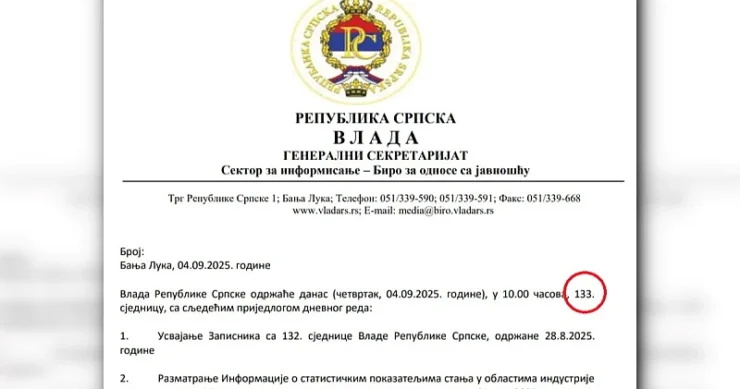Nova nelegalna Vlada Republike Srpske, na čijem čelu se nalazi Savo Minić, danas održava sjednicu, ali ne kao svoju prvu, već kao 133. sjednicu – što je zapravo numeracija iz mandata bivšeg premijera Radovana Viškovića.