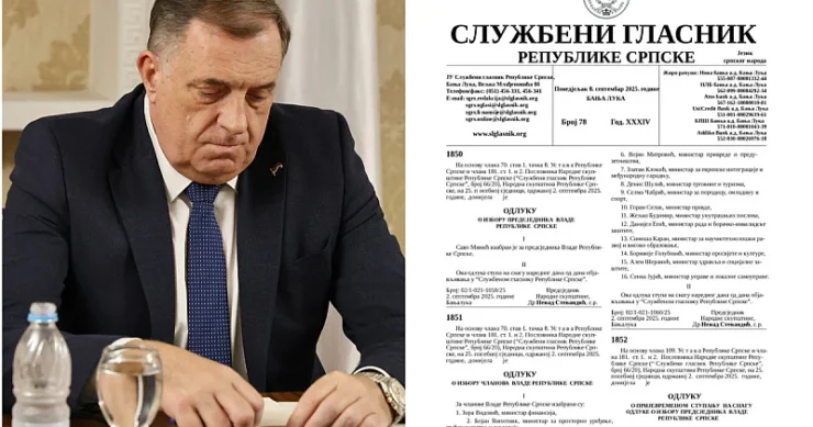 Odluku Narodne skupštine RS o izboru predsjednika i članova nelegalne entitetske vlade danas je objavio Službeni glasnik RS, a potpisao je predsjednik parlamenta Nenad Stevandić.
