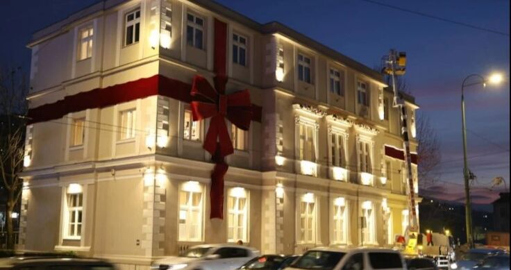 Baš kao u Beču i drugim europskim metropolama, crvena mašna na zgradi u centru Sarajeva već godinama predstavlja jedan od najprepoznatljivijih simbola praznične sezone.