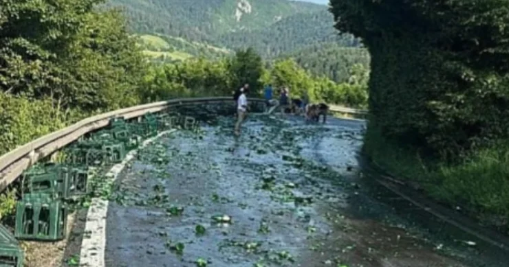 Prema informacijama i fotografijama koje je dostavio čitatelj, a koje je objavio Klix.ba radi se o velikom broju gajbi punih staklenih flaša koje su ispale s teretnog vozila i razbile se na cesti, prekrivši kolovoz razbijenim staklom.