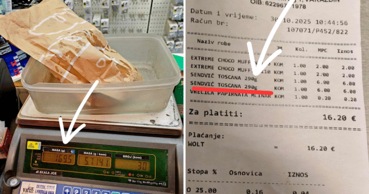 Prema objavi, sendviči bi trebali težiti 290 grama, dok su ih potrošači izvagali na 169,5 i 172,9 grama, što je razlika od gotovo 40 posto! Platforma ističe kako je takva praksa neprihvatljiva, budući da trgovci na taj način varaju kupce, a kazne su minimalne, prenosi Sl. Dalmacija.