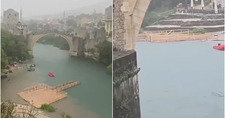 Najveći udar pretrpio je drveni most na platou ispod Starog mosta, koji je u bujici potpuno uništen i odnesen niz rijeku Neretvu. Ovaj most, smješten neposredno ispod UNESCO-ovog simbola Mostara, bio je popularno okupljalište kako za Mostarce, tako i za brojne turiste koji su uživali u pogledu na Stari most iz posebne perspektive.