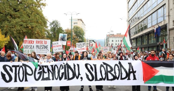 Protest “Bosna i Hercegovina za slobodnu Palestinu” održava se u Sarajevu u organizaciji neformalne grupe građana. Okupljanje je počelo u 13 sati ispred Spomenika djeci opkoljenog Sarajeva, a šetnja je nastavljena prema parku između Historijskog i Zemaljskog muzeja. Nakon čitanja zahtjeva organizatora, održava se umjetničko-kulturni program u kojem učestvuju Larisa Musić i Irma Alimanović, dok će manifestacija biti zaključena izvođenjem antifašističke pjesme “Bella Ciao” u izvedbi hora Chorus Cadenza.