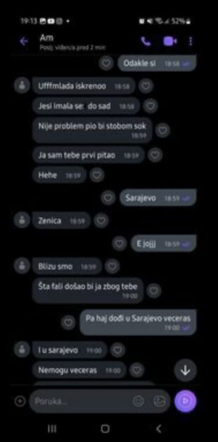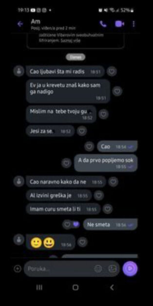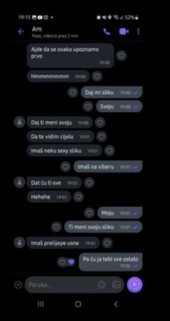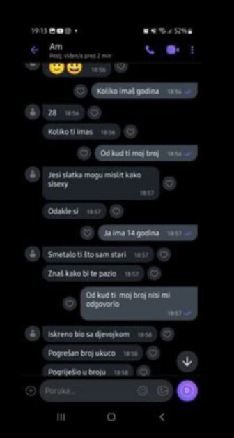 Sreća za maloljetnicu bila je da je prijavila svome ocu da je dobila poruku sa nepoznatog broja na Viber, pa nije pročitala ništa od degutantnog sadržaja koji je muškarac poslao.