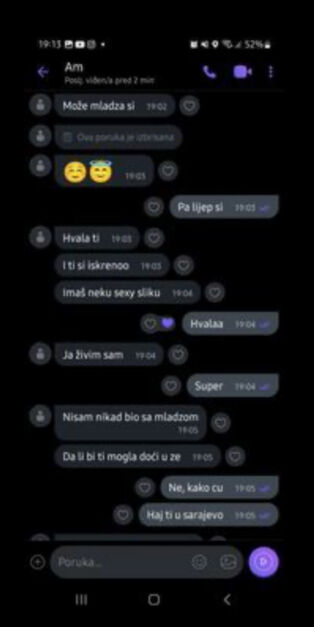 U nastavku objavljujemo šokantne poruke koje je Amel Alihodžić slao, iako je na početku bio upoznat da se dopisuje s djevojčicom od 14 godina.
