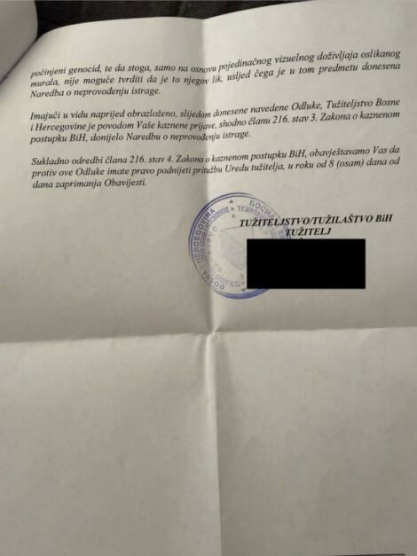 “Drugim riječima, prema stavu Tužilaštva BiH – nije krivično djelo naslikati ‘čiku u uniformi’, iako je riječ o osobi koja je pravosnažno osuđena za genocid, zločine protiv čovječnosti i progon civila.