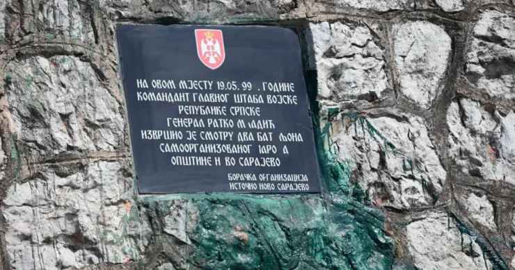 Spomen-obilježje ratnom zločincu Ratku Mladiću, koje se nalazi na Vracama, odnosno entitetskoj liniji, između Sarajeva i Istočnog Sarajeva, ponovo je oštećena.