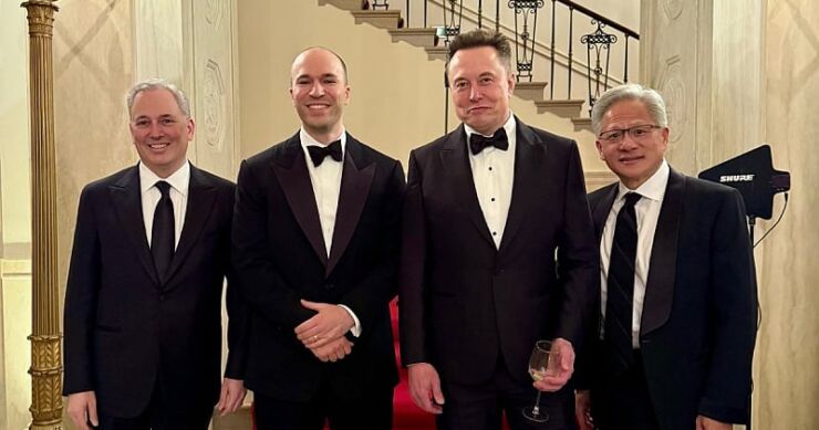 Noć ranije, milijarderi i investitori bili su prisutni i na večeri koju je organizovao Donald Trump, a na zajedničkoj fotografiji mogli su se vidjeti Elon Musk, Greg Brockman (prvi čovjek OpenAI kompanije), David Sacks te prvi čovjek kompanije Nvidia Jensen Huang.