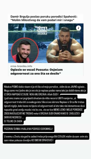 Podsjećamo, na društvenim mrežama na profilu Brgulje, pod njegovim imenom, obljavljeno je pismo u kojem se izvinjava, moli za sabur, iskazuje saosjećanje, ali i ne demantuje da je napustio BiH.