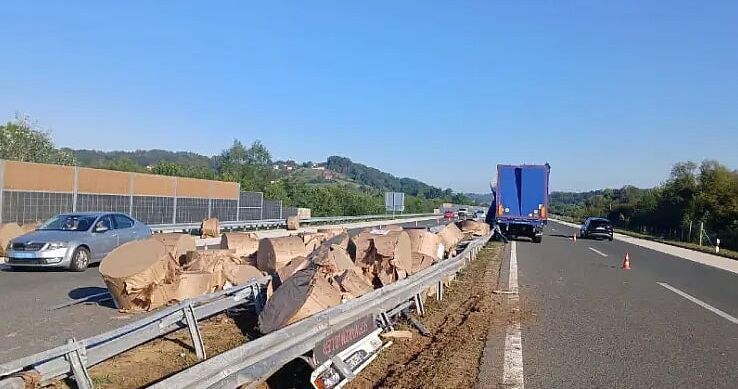 Kako BIHAMK navodi, teret koji je kamion prevozio, odnosno balirano sijeno se rasulo po autoputu u oba smjera.