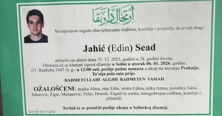 Dženaza Seadu Jahiću, mladiću iz Tuzle koji je nađen mrtav na Jahorini, bit će klanjana sutra u Solini kod Tuzle poslije podne namaza.