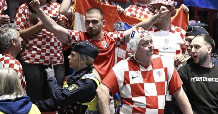Španija je već u prvom poluvremenu napravila veliki korak ka pobjedi, pošto su Gonzales i Meljado donijeli „Crvenoj furiji“ značajnu prednost.Hrvatska je do počasnog pogotka stigla u 37. minuti, kada je Riviljos nespretno poslao loptu u vlastitu mrežu.Ipak, susret je ostao u sjeni incidenata na tribinama, gdje su se našli navijači Hrvatske, koji su činili većinu od ukupno 6.456 prisutnih gledalaca.Nakon što je Španija povela 2:0, izbili su neredi, a došlo je i do fizičkog sukoba hrvatskih navijača sa obezbjeđenjem u dvorani. Najprije su na teren bacane čaše, što je dovelo do prekida utakmice, a potom je izbila i tuča koja je izazvala novi zastoj.Utakmica je na kraju nastavljena, ali Hrvatska nije uspjela da preokrene situaciju niti da se domogne finala.U drugom polufinalnom meču, koji je na programu od 20.30 sati, snage će odmjeriti futsal reprezentacije Francuske i Portugalije.