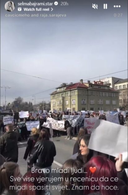 Selma Bajrami je još jednom pokazala da je uz svoj narod, te se tim putem oglasila na Instagramu i pružila podršku mladim ljudima, ali i svim onim koji su sudjelovali na protestima koji već nekoliko dana traju u Sarajevu.