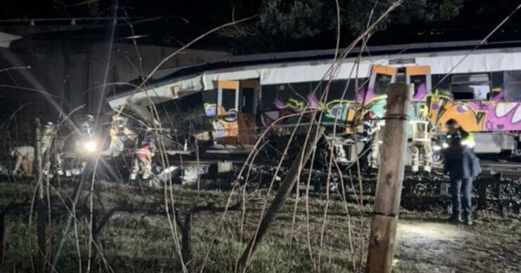 Španska televizija TVE javila je da su četiri osobe teško povrijeđene.Službe su navjele da je voz iskočio iz šina nakon što je zaštitni zid pao na prugu u blizini Barselone. Nastradao je mašinovođa voza.