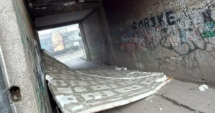 Jutros, 27. januara, oko 7 sati došlo je do obrušavanja plafona na prolazu u zgradi “Sarajka” u Živinicama, kuda prolaze automobili i pješaci.