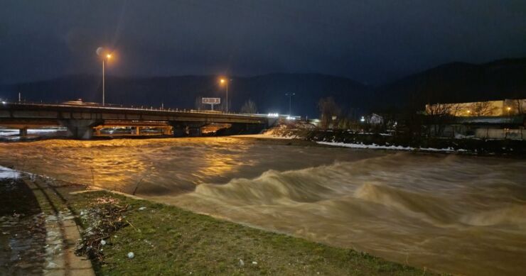 Mještani su rekli da se rijeka izlila u Mliništima. Neki od njih su u kabanicama i čizmama te poručuju da će dežurati cijelu noć. Voda ulazi u dvorišta i na prilazne puteve.