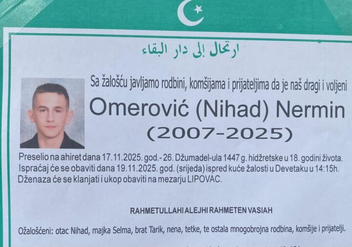 Bosnu i Hercegovinu potresla je vijest o iznenadnoj smrti Nermina Omerovića (2007–2025), osamnaestogodišnjeg učenika i mladog sportiste iz Devetaka kod Lukavca Nermin je preminuo 17 novembra...