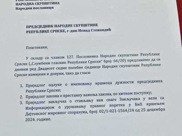 U Banjaluci je počela 27 posebna sjednica Narodne skupštine Republike Srpske, na čijem su dnevnom redu tri tačke Pred zastupnicima su: Prijedlog odluke o imenovanju vršioca dužnosti...