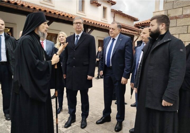 Predsjednik SNSD-a Milorad Dodik dočekao je predsjednika Srbije Aleksandra Vučića u selu Mrkonjići, rodnom mjestu Svetog Vasilija Ostroškog Njegovo visokopreosveštenstvo mitropolit...