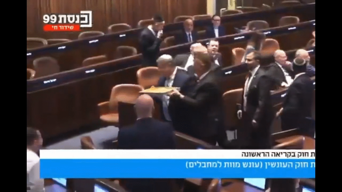 Izraelski parlament (Knesset) je u prvom čitanju izglasao zakon kojim se uvodi smrtna kazna za Palestince za pojedina djela. Nakon glasanja je izraleski ministar Ben Gvir dijelio baklave prisutnima, praveći tako morbidnu paralelu sa palestinskim običajem.