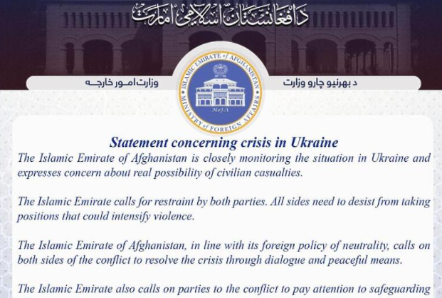 Ministarstvo vanjskih poslova Afganistana saopćilo je da talibani pomno prate situaciju Rusije i Ukrajine te da su zabrinuti zbog mogućih civilnih žrtava Talibanska vlada u Afganistanu...