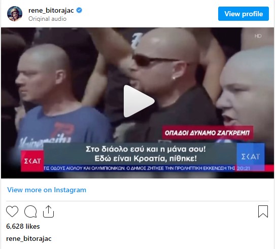 Huliganizam i navijačko nasilje u kojima su sudjelovali zagrebački Bad Blue Boysi tijekom kojega je u Atini ubijen 29-godišnji Michalis Katsouris, navijač AEK-a, udarne su vijesti u hrvatskim i grčkim medijima, a sad se u grčkim vijestima našao i naš poznati glumac Rene Bitorajac.