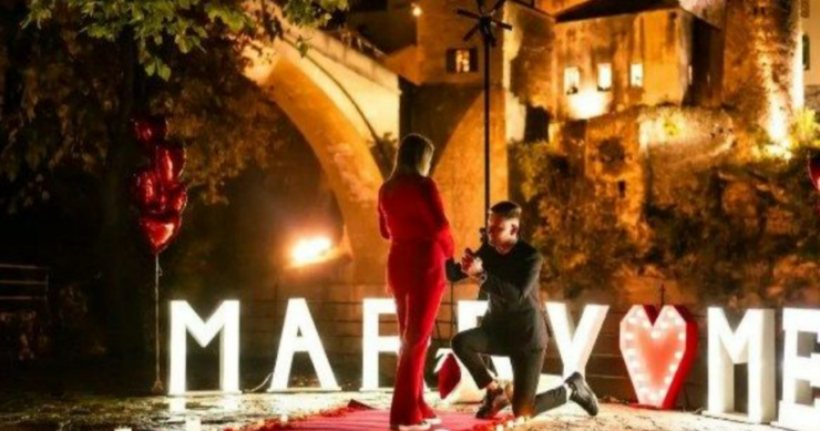 Elmir se naročito potrudio, pa je postavio crveni tepih, svijeće, balone i natpis “Marry me” (Udaj se za mene) ispod Starog mosta u Mostaru, što se vidi na snimku koji je objavljen na Instagramu.
