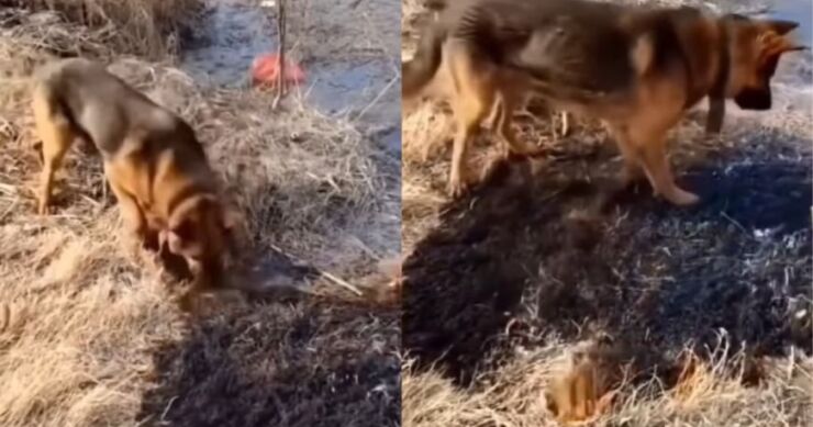Iako je mogao da se povrijedi, pas je hrabro gasio vatru.