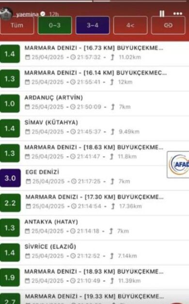 Zemljotresi gotovo svakih pet minuta već dva dana – napisala je ona, dodavši emotikone tuge i molitve.