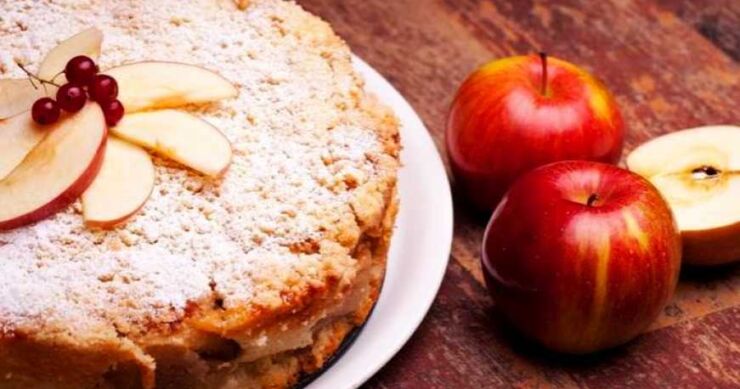Smjesu ravnomjerno prelijte preko složenih jabuka na limu i lagano poravnajte. Stavite kolač u prethodno zagrijanu pećnicu na 180 °C i pecite oko 30 minuta, dok površina ne postane zlatno-smeđa, piše Zadovoljna.
